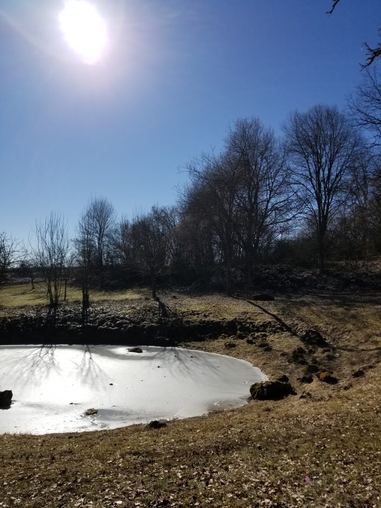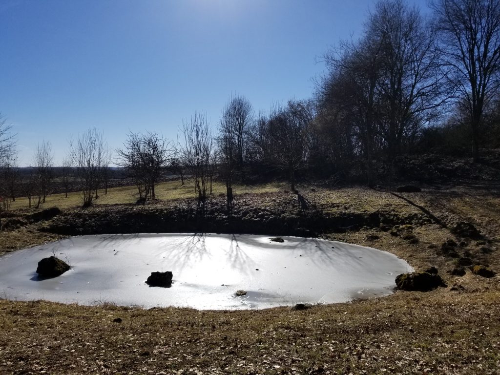 Mit dem Fahrrad ganz in der Nähe zu erreichen. Es ist ein Platz zum Erholen und Entspannen. In den ersten wieder wärmeren Tagen war die Hüle noch zugefroren.