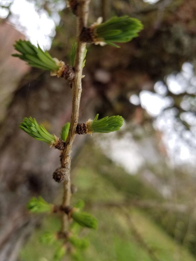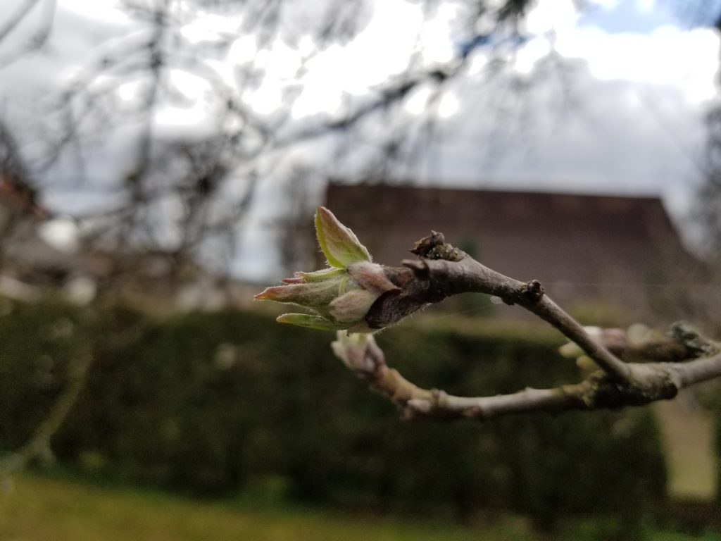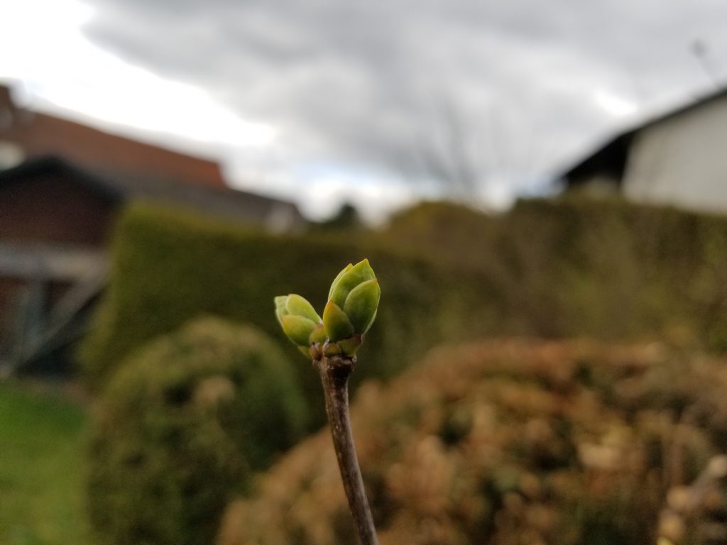 Apfelbaum, Flieder, Ginko und Lerche treiben langsam aus. Das macht Hoffnung für den Frühling.