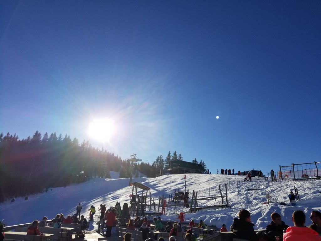 Die Skipisten sind offen, keine Wolke zu sehen – da kann man es sogar draußen aushalten weil es oben am Berg wärmer ist, wie unten im Tal. Das lädt ein zum Entspannen und Besinnen auf das Wesentliche.